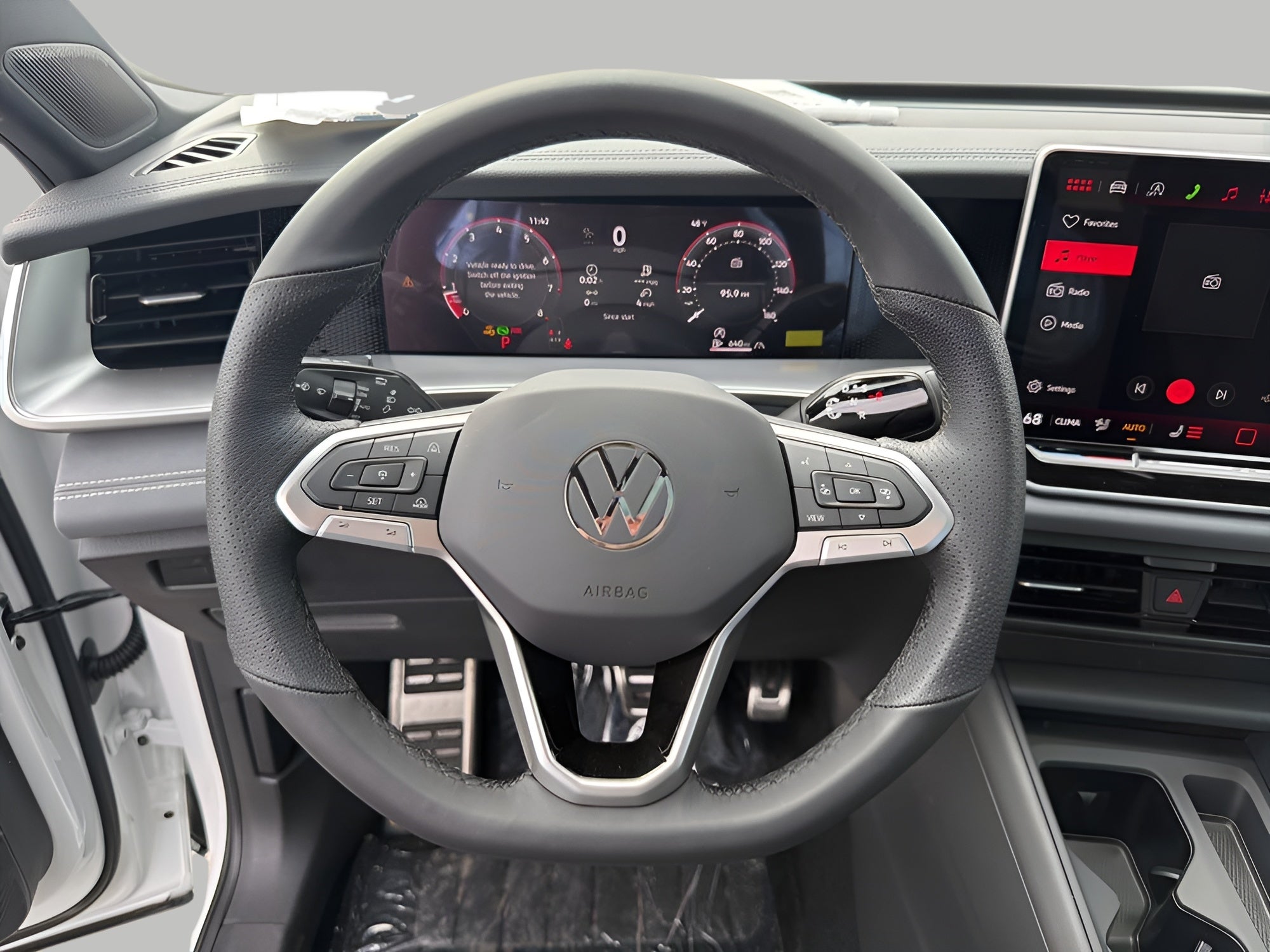 - MIB4 Composition Media Touchscreen w/AM/FM Radio -inc: WMA/MP3/FLAC player w/USB, 12.9" touchscreen multi-function center display w/backlit sliders, voice control, 6 speakers + center speaker (7 speakers total) sound system, capability for in-vehicle 4G LTE enabled Wi-Fi (cellular data plan required; includes limited trial), capability for connected vehicle services (capabilities for services vary; requires enrollment or subscription), Bluetooth® connectivity (for compatible devices), SiriusXM w/360L (w/3-month free trial subscription; 360L services require acceptance of Car-Net terms), App-Connect smartphone integration (w/Apple CarPlay, Android Auto and MirrorLink) via USB, wireless App-Connect smartphone integration (for compatible devices) w/multi-phone pairing capability, 45W fast charging (for compatible mobile phones and accessories) via USB in both rows and Qi wireless inductive charger, cooled, up to 15W (for compatible mobile phones and accessories) All connected vehicle services are subject to terms and limitations. Some services require a paid subscription. See dealer or vw.com/connected for important details.