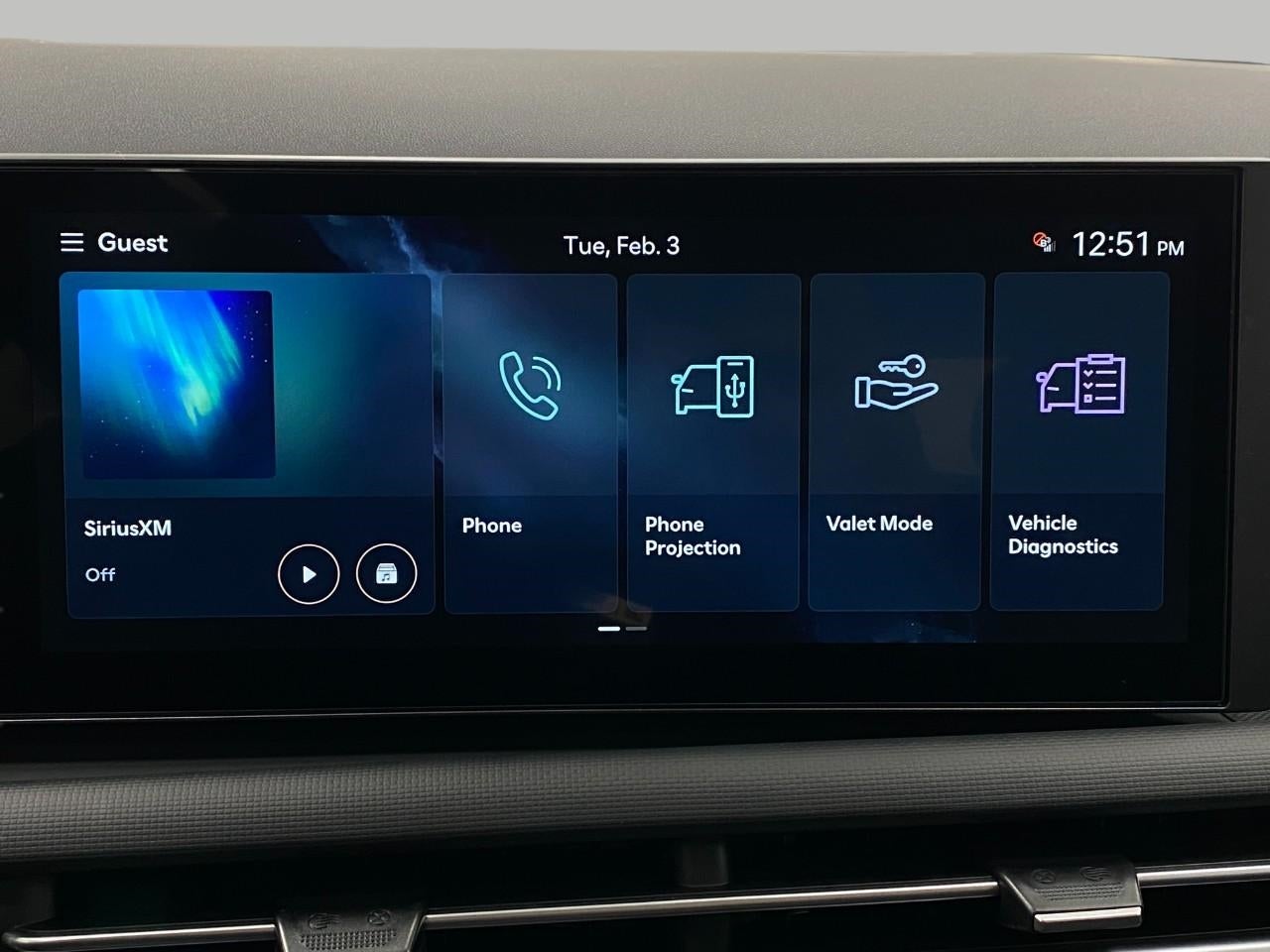 - Radio: AM/FM/HD Audio System -inc: 12.3" color touchscreen display, 6 speakers, SiriusXM satellite radio system (3-month trial subscription), wireless Apple CarPlay and Android Auto integration, controller OTA update capability, Blue Link connected car system and USB connectivity