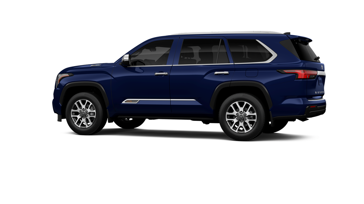- Bright-chrome "SEQUOIA" rear door badge, chrome "1794 EDITION" door badge and garnish, door handles, window molding and mirror caps; color-keyed tailgate spoiler; black-painted overfenders