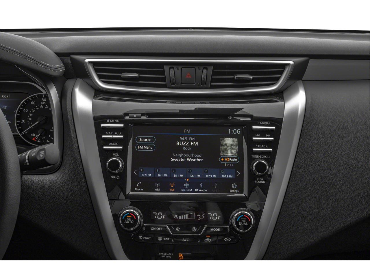 - Radio: AM/FM/CD/MP3/WMA Audio System -inc: Bose audio system w/11 speakers plus dual subwoofer, NissanConnect w/navigation featuring Apple CarPlay and Android Auto, Nissan door to door navigation w/3D building graphics and satellite imagery, connected navigation features including online POI search, door-to-door and online premium traffic information, HD Radio, SiriusXM Travel Link (weather, fuel prices, movie listings, stock info, sports and parking), SiriusXM Traffic, auxiliary audio input jack, SiriusXM satellite radio, 8" color display w/multi-touch control, 2 front illuminated USB connection ports (1 type-A, 1 type-C) for iPod interface and other compatible devices, Bluetooth hands-free phone system, streaming audio via Bluetooth, hands-free text-messaging assistant and 2 rear illuminated USB charge ports (1 type-A, 1 type-C)